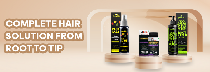 Use Growfitz Herbal Anti-Hairfall Shampoo + Conditioner to reduce breakage, and Hair Revive+ Tablets to