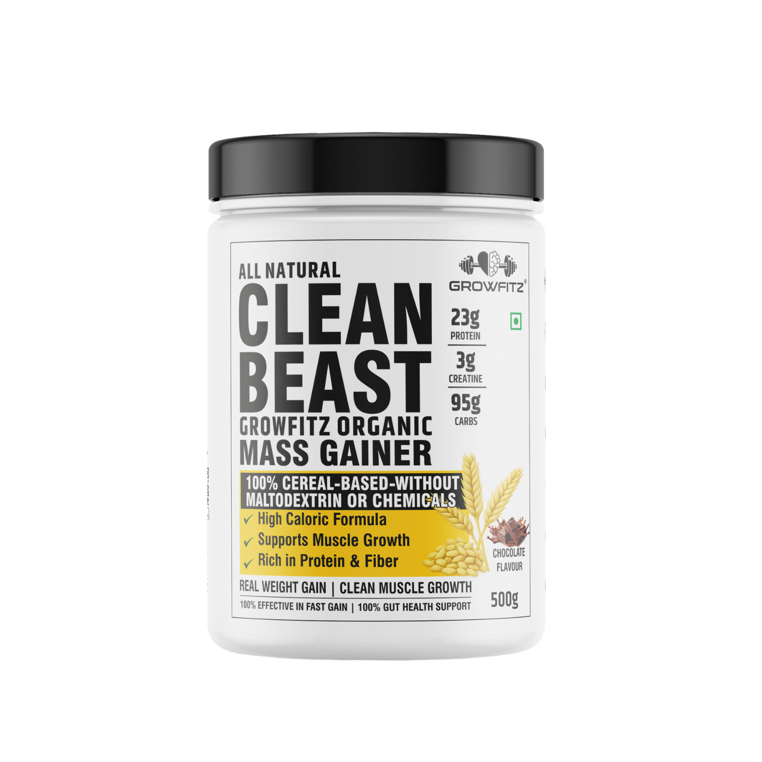 Clean Beast is a premium mass gainer engineered for serious athletes seeking natural gains without compromise. This 500g formula delivers 23g of plant-based protein, 95g of complex carbohydrates from pure cereal sources, and 3g of creatine monohydrate, all without artificial additives or maltodextrin. Perfect for post-workout recovery and muscle building, Clean Beast fuels your body with whole-food nutrition you can trust. Achieve your fitness goals the clean way.