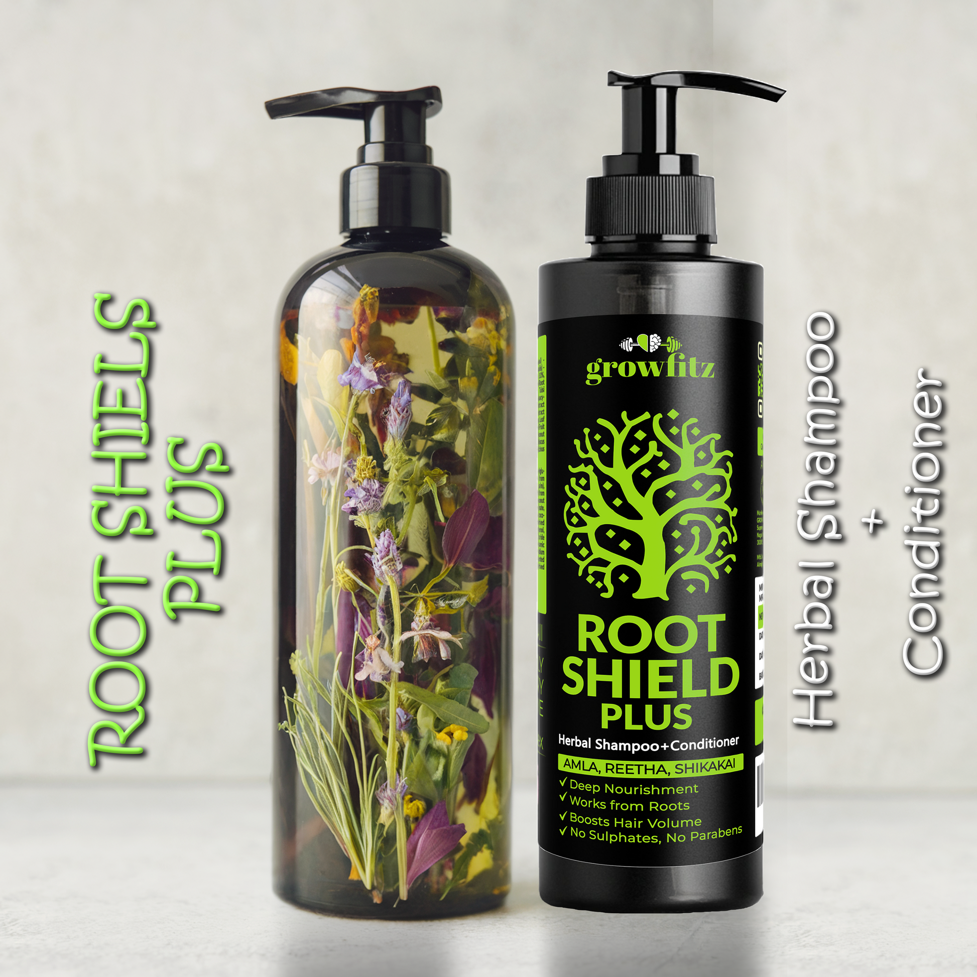 Discover the power of Ayurveda with Growfitz Herbal Shampoo, a 100% organic and Ayush Certified hair care solution designed to nourish your scalp and strengthen your hair naturally. Made with Amla, Aloe Vera, Bhringraj, and Neem, this gentle yet effective formula promotes healthier, shinier, and thicker hair – without sulfates, parabens, or harsh chemicals.