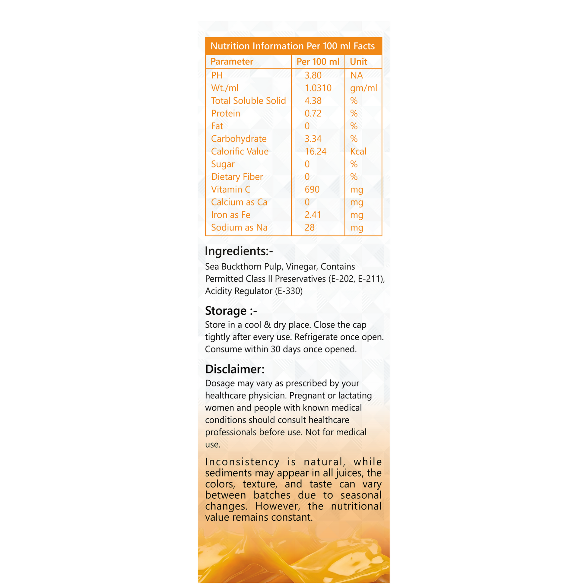 Discover the power of nature with Himalayan Sea Buckthorn Pulp Juice, made from high-altitude sea buckthorn berries known for their rich nutritional profile. Naturally abundant in Vitamin C, Omega 3, 6, 7 & 9, and antioxidants, this juice is crafted to support everyday wellness in a pure and refreshing way.