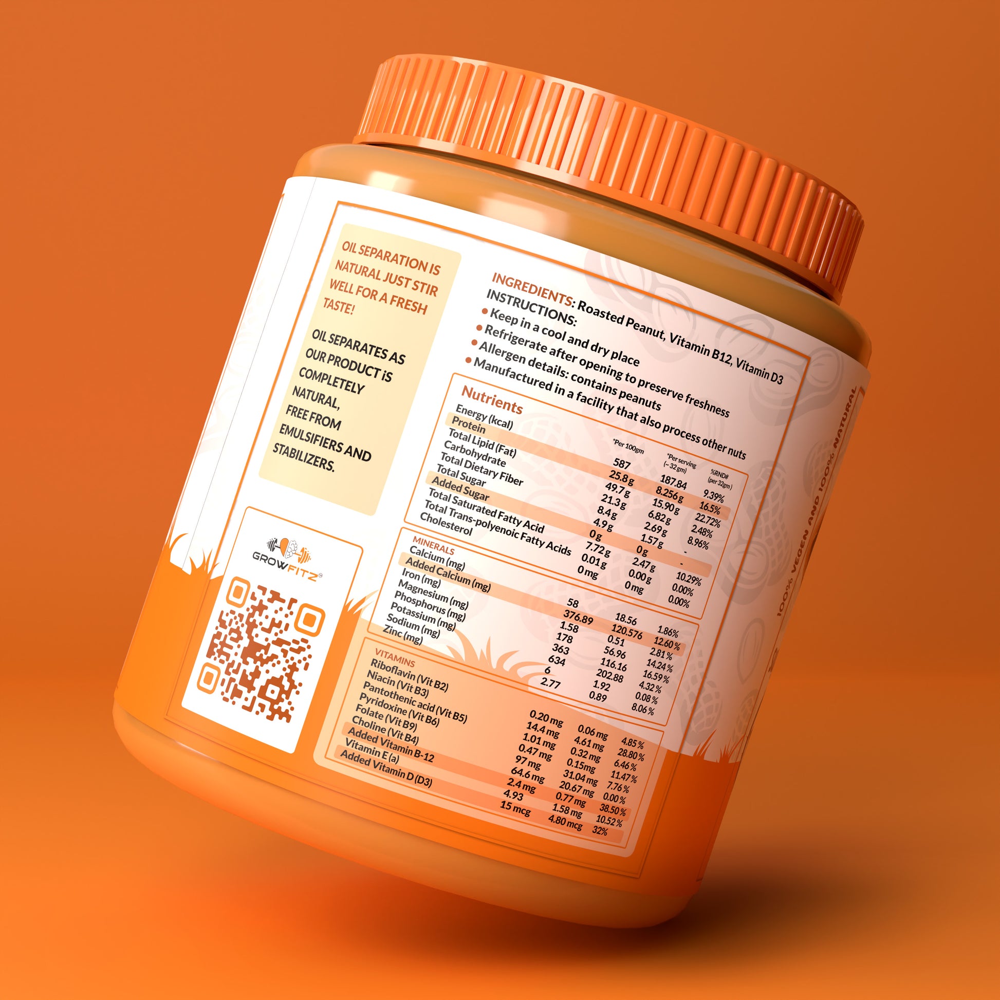 Fuel your fitness with our Natural Peanut Butter – Smooth, made from 100% roasted peanuts with no sugar, preservatives, or hydrogenated fats. Each serving packs 26g protein plus Vitamin B12 & D3 for energy, immunity, and bone health.